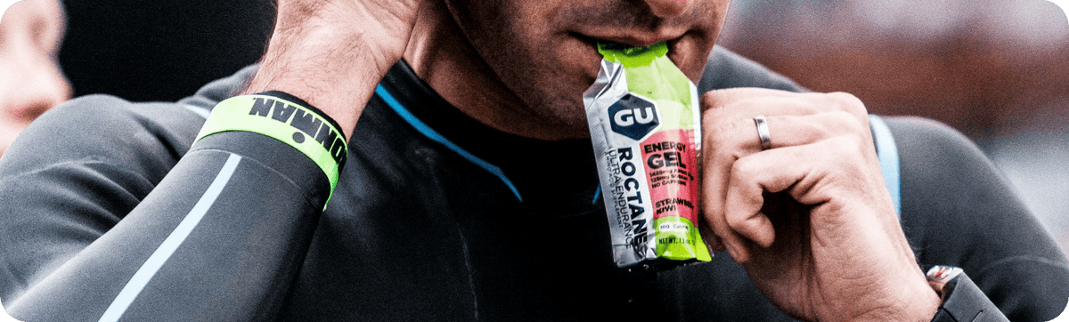 GU packt 100 Kalorien in unsere Energy Gels, da der Körper im Allgemeinen während des Trainings etwa 120–240 Kalorien pro Stunde verdauen kann. Wenn Sie versuchen würden, mehr zu essen, würde der Körper Blut aus Ihren Muskeln zurück in den Darm leiten, um die überschüssige Nahrung/Kalorien zu verarbeiten. Wenn Ihr Stoffwechsel langsamer ist, reicht ein Energy Gel alle 45 Minuten völlig aus. Wenn Sie einen schnelleren Stoffwechsel haben, nehmen Sie alle 30 Minuten ein Energiegel ein und prüfen Sie, ob es mit Ihrem Verdauungssystem harmoniert. Wir empfehlen immer, Ihren Ernährungsplan durchzuarbeiten, um herauszufinden, was für Sie am besten funktioniert.