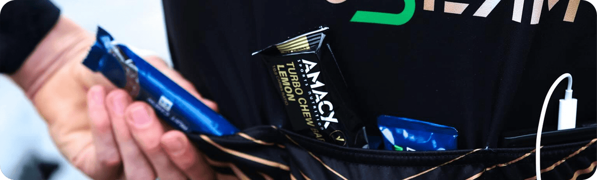 Amacx Turbo Chew Bar is a high-performance energy chew designed to deliver fast, efficient fuel during demanding endurance efforts. Developed in collaboration with Team Visma | Lease a Bike, it provides 40g of carbohydrates in an optimal 1:0.8 glucose-to-fructose ratio, ideal for athletes aiming to hit 100-120g of carbs per hour.