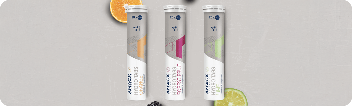 Amacx Hydro Tabs work by replacing key electrolytes lost through sweat, helping to restore your body's natural fluid balance. Sodium and Potassium support nerve signalling and hydration, while Magnesium and Calcium assist with muscle contraction and recovery. When mixed with water, the tablet forms an isotonic solution that your body can absorb efficiently, helping you stay energised and hydrated throughout activity.