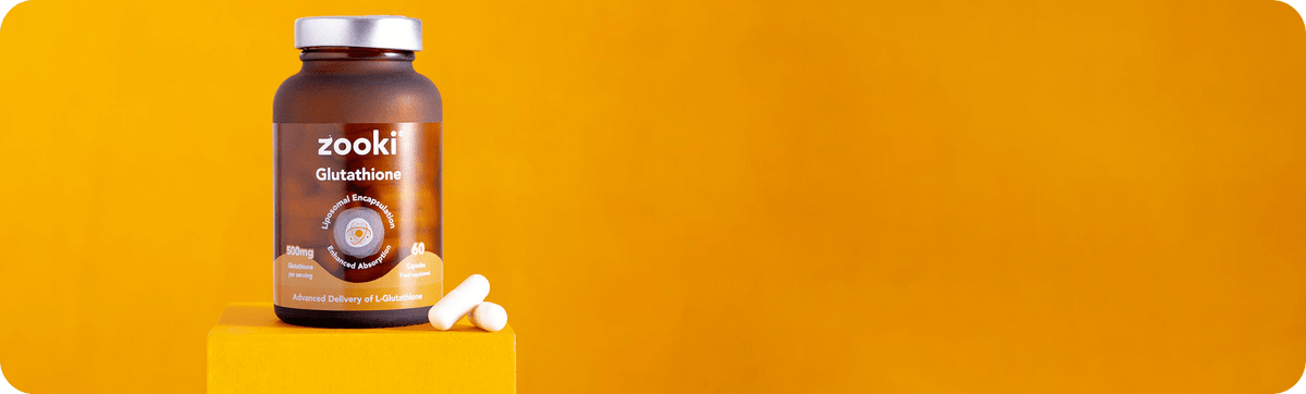 Zooki Liposomal Glutathione Capsules offer a highly effective way to support your body's natural detoxification process while promoting healthy energy levels, skin clarity, and cellular repair. Glutathione, often referred to as the "master antioxidant," is vital for protecting cells against oxidative stress and maintaining overall wellbeing. However, its benefits are often limited by poor absorption in traditional supplements.