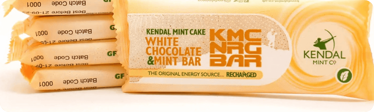 The KMC NRG BAR White Chocolate Coated Recharged blends the nostalgic taste of Kendal Mint Cake with a modern energy boost, making it an ideal choice for endurance athletes, outdoor explorers, and active lifestyles. Each hand-made bar is coated in indulgent white chocolate and features a peppermint-infused centre that’s both delicious and gentle on the stomach.