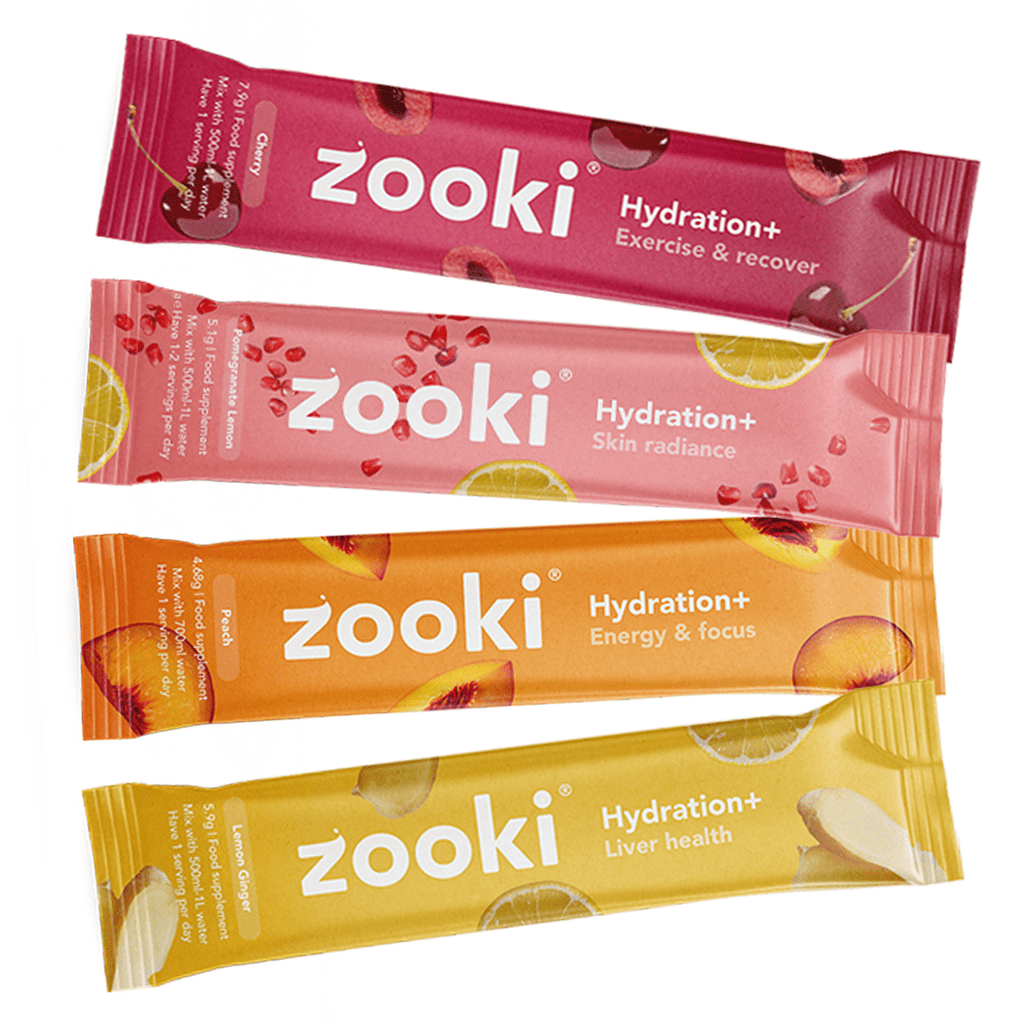 Zooki Hydration+ is available in four delicious flavours, matched to each blend: Peach (Energy & Focus), Lemon & Ginger (Liver Health), Pomegranate (Skin Radiance), and Cherry (Exercise & Recover). With no artificial nasties, and suitable for vegans, it's the easy, daily hydration fix that delivers more than just water.