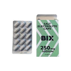 BIX Salt Electrolyte Caps: Balanced hydration support in an easy-to-swallow capsule, perfect for precision dosing during long sessions or stage races.
